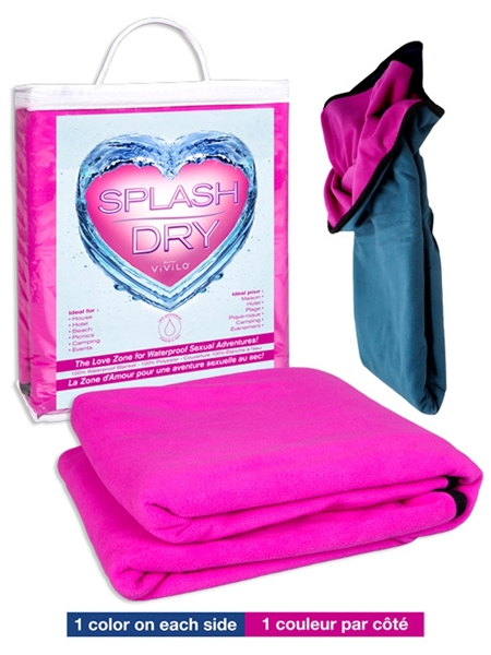 La serviette totalement imperméable Splash Dry vous permet d’utiliser votre lotion de massage, votre lubrifiant ou même de laisser aller tous vos fluides corporels sans aucune retenue. Splash Dry est une barrière totalement étanche entre vous et l’endroit où vous vous trouvez. Pourrait être utilisée en toute tranquillité d’esprit par les femmes fontaines.