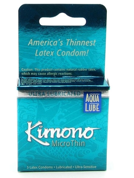 Condoms lubrifiés Micro Thin Aqua Lube Paquet de 3 Par Kimono